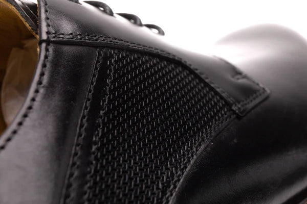 The Campton is a traditional vamp derby lace-up shoe made of high-quality black leather. It is completely lined with sheepskin, has cross-hatch detailing on the heel, and is paired with a sheepskin leather insock that has extra memory foam padding. In order to guarantee that Campton is made to last, the very durable synthetic outsole adds further comfort, while the redesigned insole offers our well-known Steptronic flexibility.